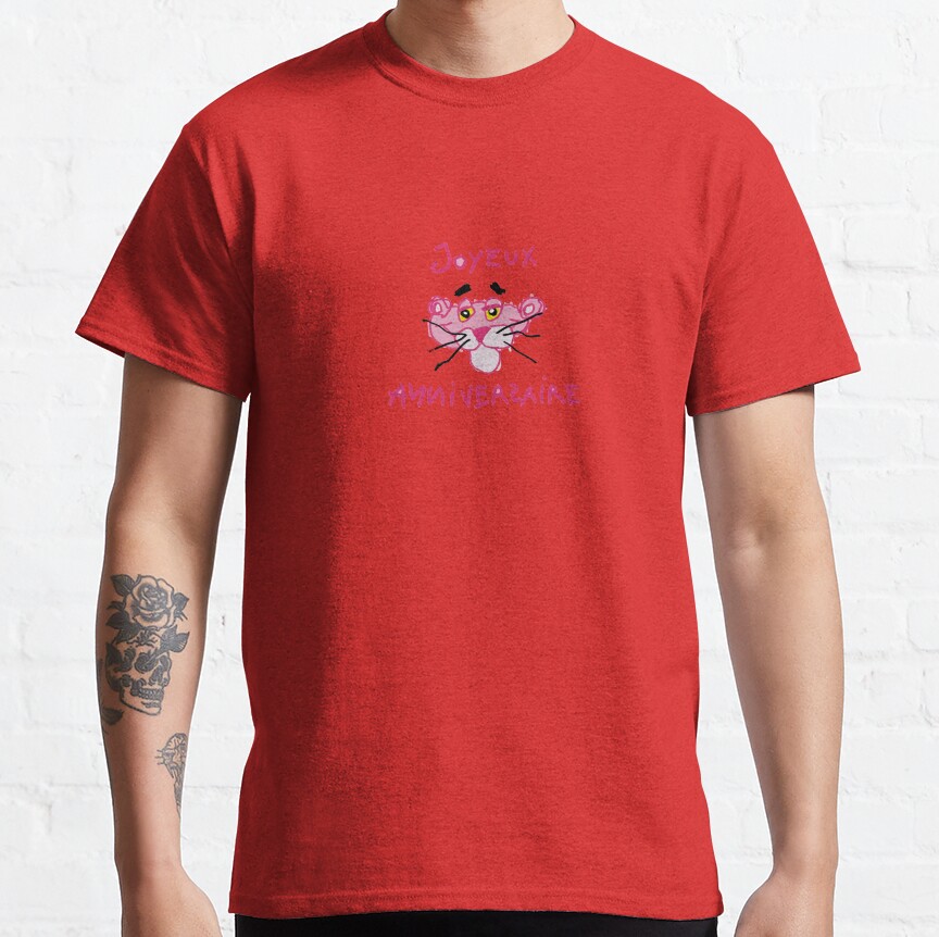 Happy Birthday Pink Panther Yellow Background T-shirt